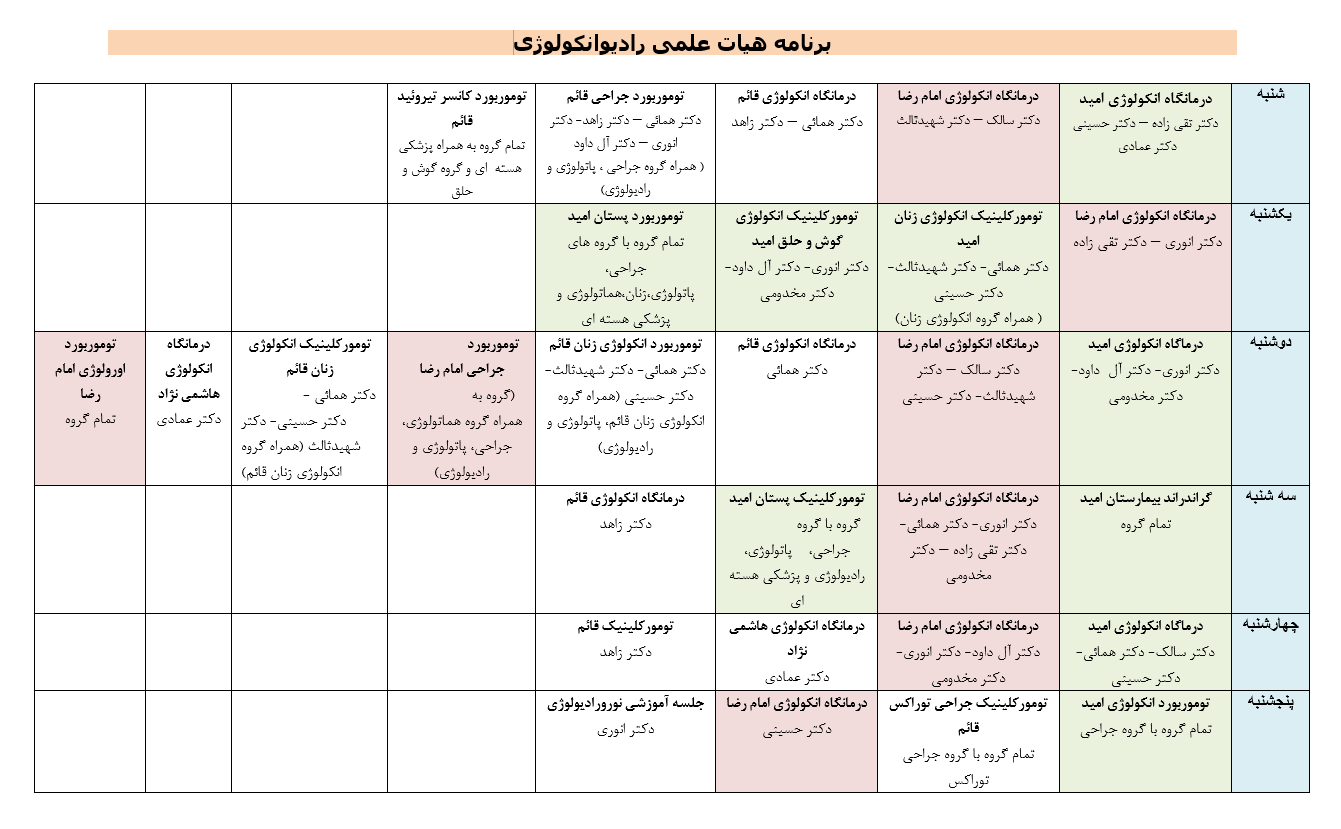 برنامه هفتگی هیات علمی رادیوانکولوژی فهیمی راد فاطمه بدون مجموعه 02 مهر 1403 بازدید: 128 امتیاز: ( 0 Rating ) امتیاز کاربران لطفا رای دهید رای 1 رای 2 رای 3 رای 4 رای 5